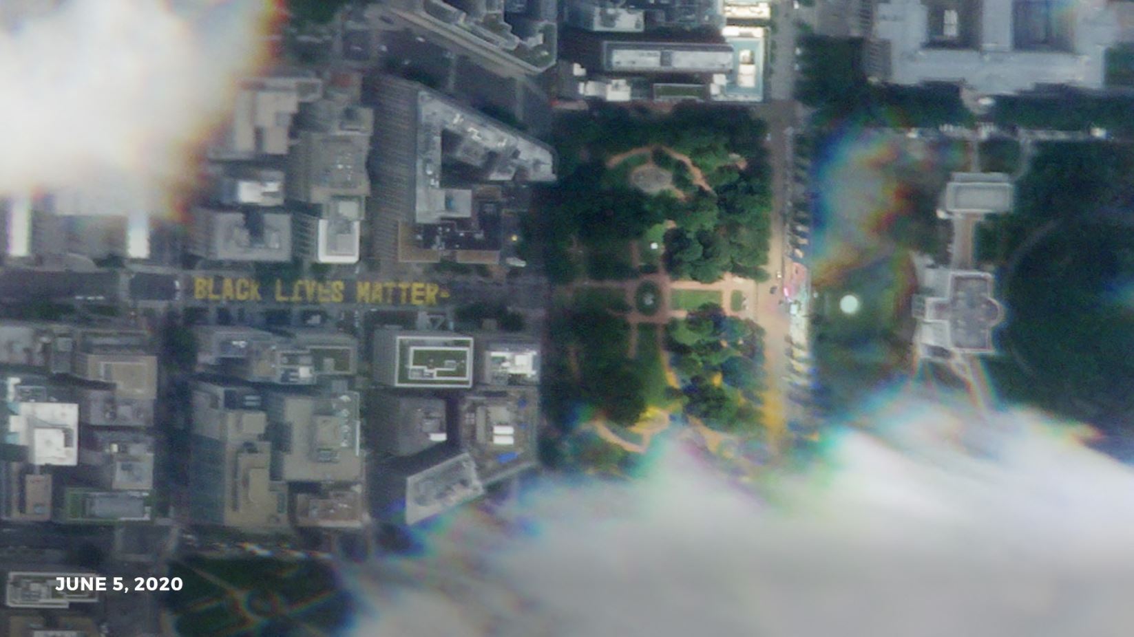 Black Lives Matter Mural from Space On 5 June, the Earth observation company Planet shared this image of Washington, D.C. taken from orbit by one of their satellites. Visible is an enormous Black Lives Matter mural, which was approved by the city’s mayor, on a street leading to the White House. Several other cities have followed suit, creating huge anti-racism slogans visible from space. Planet