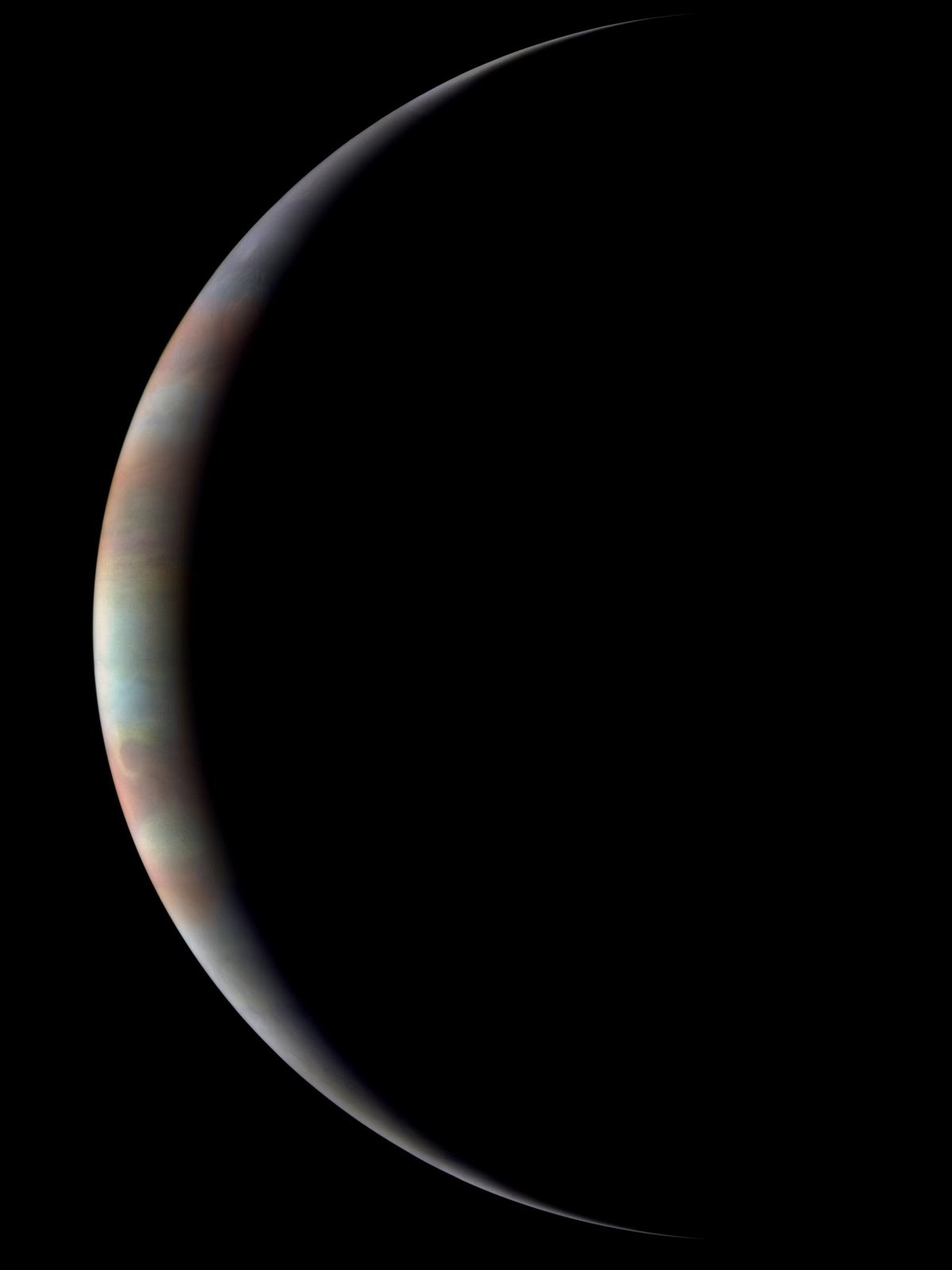 Despite its antenna problems, Galileo accomplished some remarkable science. However, a major loss was the lack of global views during the orbital mission. Ignoring the resurrected OPNAV image I posted recently, this is largely true. However, in between Galileo's 9th and 10th orbit, it obtained some highly compressed, high phase global imagery. The images are reduced to 75% of the original resolution because of the damage from interlacing and compression.